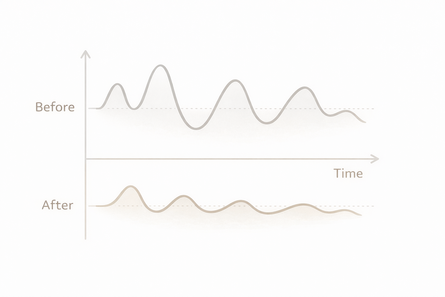 A. はい、少しずつ整っていく方は多いです。自律神経は「性格」ではなく「体の状態」に強く影響されます。睡眠・呼吸・血流・胃腸の働きなど、回復の条件が整うと、波が小さくなったり、戻りが早くなったりという変化が起きやすくなります。